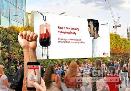 摘得冠軍的數(shù)字創(chuàng)意活動(dòng)是一個(gè)由23red推出的增強(qiáng)現(xiàn)實(shí)感的宣傳活動(dòng)(如上圖所示);顒(dòng)以虛擬獻(xiàn)血為主題,旨在解決英國獻(xiàn)血者數(shù)量不斷下降的問題。