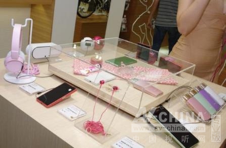 右方外側(cè)則是以主題的形式呈現(xiàn)不同色系的 Sony 產(chǎn)品,其中還有一個(gè)柜臺是以"粉紅"為主題,將 Sony 所有粉色系產(chǎn)品化為女孩兒的夢幻區(qū)域.