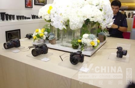 最右側(cè)則是以四方桌展示 Sony 的一系列相機(jī),右邊的櫥窗內(nèi)陳列 Sony 的鏡頭與相機(jī)周邊,提供開放的相機(jī)試用空間.