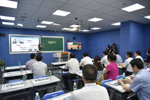 考察過程中,鮑常勇市長等一行領(lǐng)導(dǎo)還扮演了一回學(xué)生,親身體驗銳取精品互動教室。在銳取深圳總部和遠(yuǎn)在銳取北京辦事處的講師們進(jìn)行一場高清的遠(yuǎn)程互動,同時,通過銳取自主研發(fā)的互聯(lián)網(wǎng)直播平臺——YBOLO,現(xiàn)場的領(lǐng)導(dǎo)們可以通過自己的手機和移動端設(shè)備,輕松掃碼就可以觀看到整個參觀流程的直播畫面。穩(wěn)定流暢的畫面、清晰可辨的聲音,得到了領(lǐng)導(dǎo)們的一致稱贊。