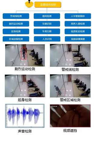 由于公安、司法監(jiān)所關(guān)押人員的特殊性,安全管理工作尤為重要。智能視頻檢索技術(shù)用在監(jiān)獄監(jiān)所中,可實(shí)現(xiàn)警戒線(xiàn)檢測(cè)、劇烈運(yùn)動(dòng)檢測(cè)、起身檢測(cè)、區(qū)域逗留檢測(cè)、視頻遮擋檢測(cè)。方便第一時(shí)間發(fā)現(xiàn)監(jiān)所內(nèi)人員及設(shè)備異常狀況,及時(shí)做出處理措施,有效遏制所內(nèi)各類(lèi)突發(fā)事件進(jìn)一步發(fā)展。