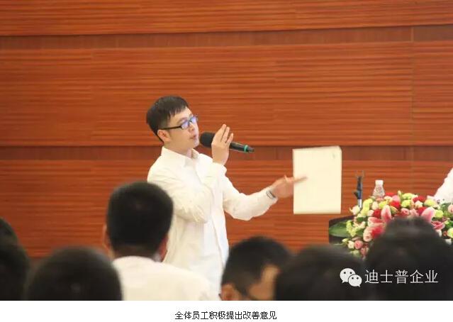 會(huì)議在全體員工深情而激昂地誦讀感恩詞及企業(yè)愿景、使命、核心價(jià)值觀下,正式拉開帷幕。隨后,迪士普企業(yè)董事長王恒先生跟大家一起回顧了企業(yè)上半年的銷售情況以及市場形勢等,并表示對沖刺年終目標(biāo)充滿信心。