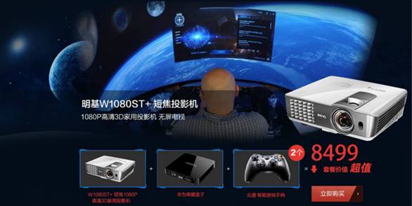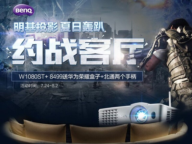 自即日起明基W1080ST+將于京東商城展開限時(shí)大促,原價(jià)8799特價(jià)8499!除直降300以享玩家外,再額外放送兩重好禮,分別為價(jià)值298的華為榮耀智能電視機(jī)頂盒(真4K超高清/H.265硬解碼/300M全向雙天線設(shè)計(jì)/接入廣電總局授權(quán)播控平臺(tái)/正版內(nèi)容合法提供),以及同樣價(jià)值298的2個(gè)北通阿修羅TE智能游戲手柄(鏡面黑酷外觀/2.4G無線連接/支持PC、PS3多種游戲平臺(tái)和智能系統(tǒng))。一臺(tái)游戲短焦投影機(jī)外加智能盒子2個(gè)手柄,讓你玩樂之余再享無屏電視和海量電影。