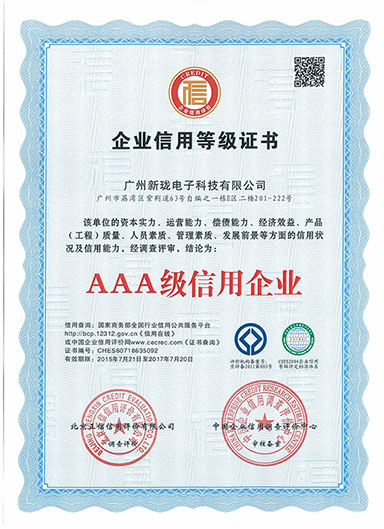 2015年7月底,按照國家商務(wù)部、工信部的相關(guān)規(guī)定,廣州新瓏電子科技有限公司(簡稱“新瓏音響”)順利通過國家商務(wù)部開展的企業(yè)信用AAA等級的審核與評估,榮膺3A信用等級殊榮。