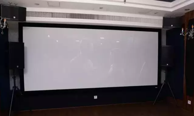 家庭影院視聽室內(nèi)安裝有一塊頂級的2.35:1寬屏幕