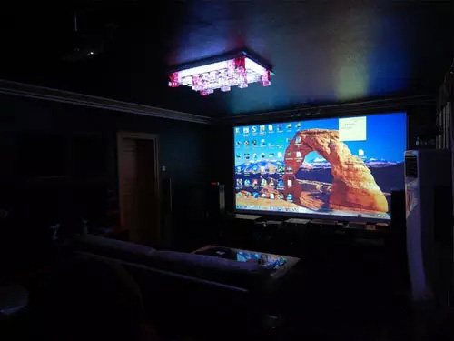 投影與大屏不同,是被動(dòng)發(fā)光,所以極易受環(huán)境影響,比差環(huán)境對(duì)聲音帶來的影響要明顯的多。對(duì)于追求終極畫質(zhì)的玩家來說,所謂客廳投影,抗光灰幕,都是扯淡。王道還是遮光吸光。