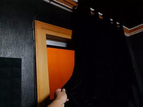 這個(gè)是遮儲(chǔ)藏室的全黑金絲絨窗簾,也是影音室的后背,減少了些聲音的硬反彈。又遮擋了上墻的HDMI線。窗簾是網(wǎng)上買的,自己安裝,全部費(fèi)用大概在900元左右。