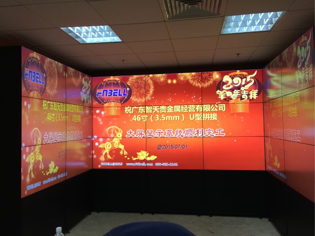 峰寧科技根據(jù)智天貴金屬的設(shè)計(jì)需求,峰寧科技為其演播室設(shè)計(jì)了一組3x7 21片46寸液晶U形拼接墻。