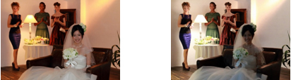 左:使用內(nèi)置機(jī)頂閃光燈,未使用色彩濾鏡 右:關(guān)閉閃光燈前景人物與背景畫(huà)面色調(diào)不一致