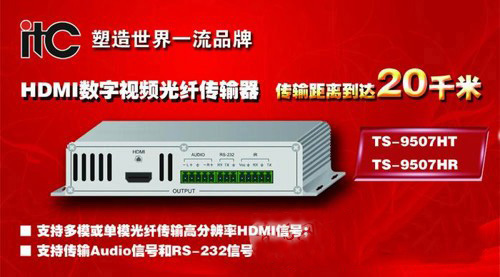 TS-9507HT & TS-9507HR是一款支持高分辨率HDMI視頻信號多;騿文9饫w傳輸延長器,它將HDMI視頻信號轉(zhuǎn)換成光纖信號傳輸,傳輸距離到達20千米,支持最高分辨率1900×1200@60Hz,并且能夠同時傳輸雙向RS-232,可配合光纖傳輸接收器或矩陣光纖輸入卡使用。