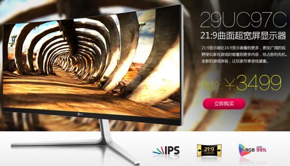 圖:LG 21:9曲面超寬屏顯示器29UC97C京東首發(fā)售價(jià)3499元