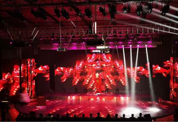 絢麗的燈光秀過后,由3D全息投影打造的一場氣勢恢宏、聲情并茂的《聽·見天籟砥礪三十年共筑音王夢》大型文藝晚會正式拉開。只見一頭雄獅沿著智慧多功能文化體育娛樂中心奔跑一圈,立于紅日之上,象征著音王如同雄獅一般,獅吼振天,成為音響行業(yè)的強(qiáng)者。身臨其境的表演將現(xiàn)場嘉賓紛紛帶進(jìn)Soundking的世界,感受它的品牌光芒。
