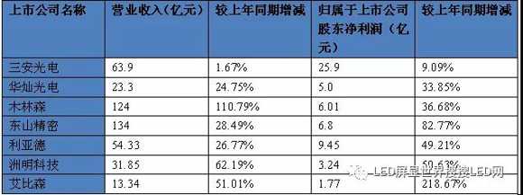 2018年上中下游部分LED上市公司前三季業(yè)績(jī)?cè)鲩L(zhǎng)狀況