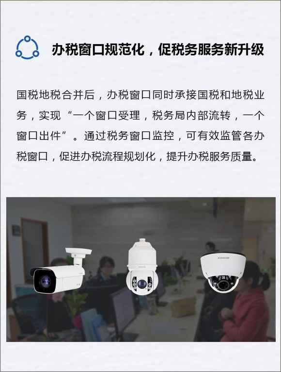 6月15日,全國省級新稅務(wù)機(jī)構(gòu)統(tǒng)一掛牌。在國稅地稅合并的新環(huán)境下,科達(dá)將充分挖掘視頻信息化技術(shù)對稅務(wù)工作的推動作用,為深化稅務(wù)系統(tǒng)改革提供產(chǎn)品和解決方案,助力實現(xiàn)稅務(wù)工作遠(yuǎn)程溝通日;、會議協(xié)同便捷化、稅務(wù)稽查執(zhí)法規(guī)范化、稅務(wù)數(shù)據(jù)可視化。