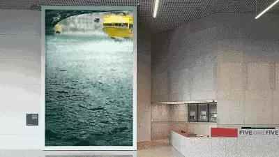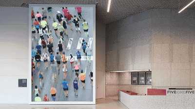 這件14×23英尺的巨大裝置,位于芝加哥北部國(guó)家街515號(hào)(515 North State Street)的大廳內(nèi),由創(chuàng)意公司ESI design和AV&C聯(lián)合創(chuàng)作完成。