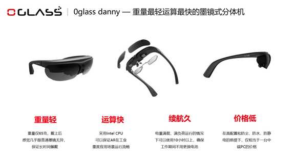 第一、產品定位。0glass工業(yè)AR的定位與國內其他AR公司的區(qū)別是0glass專注做工業(yè)AR,其他領域和行業(yè)都不涉及;而其他AR公司都是做很多行業(yè)的,比如:有的公司它只做AR+營銷,AR+游戲,AR+娛樂,AR+醫(yī)療,順帶做工業(yè);而有的公司在做AR+工業(yè)的同時,然后又做AR+醫(yī)療,AR+教育培訓等。只有0glass專注做AR+工業(yè),正是因為專注,所以我們才做出與場景深度融合的產品。比如:0glass danny AR智能眼鏡,分體式設計雙目墨鏡設計、重量更輕、10小時續(xù)航,采用英特爾x86架構處理器,部分計算可以交給云端,采用成熟光機方案,最重要的是價格可以做到萬元以內,且佩戴起來和平時普通墨鏡幾乎沒區(qū)別。它具耐高溫的特點,適合在高頻操作的優(yōu)勢,能減少系統(tǒng)周邊的零組件及冷卻系統(tǒng)的體積,符合在工業(yè)場景上的應用。