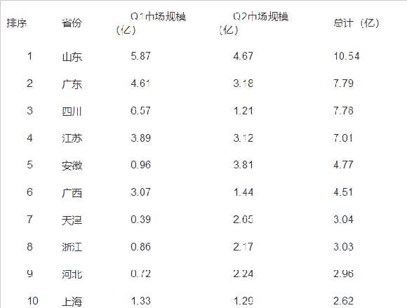 值得一提的是,2018年上半年山東省城市智能交通千萬項目市場延續(xù)近年來的發(fā)展勢頭,市場規(guī)模排名穩(wěn)固全國第一的位置(如表1所示)。2018年上半年,其市場中標千萬項目數(shù)總計約69項,市場規(guī)模總計約10.5億,約占全國城市智能交通千萬項目市場規(guī)模的13.3%。