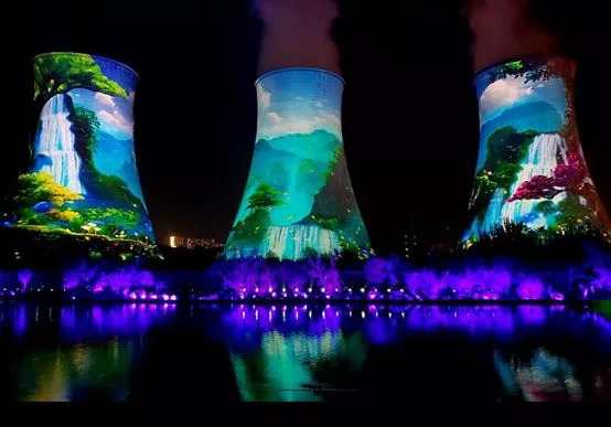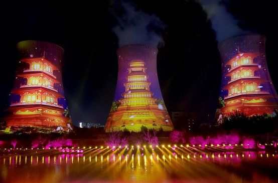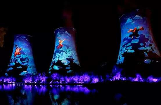 高塔投影秀運(yùn)用12臺NEC 4萬流明4K雙色激光旗艦級工程投影機(jī),開創(chuàng)性地以近百米發(fā)電廠冷卻水塔為背景,在超過10000平方米的高塔「屏幕」上,演繹了一場氣勢恢宏的傳奇劇目,炫目的投影效果讓世人嘆為觀止。