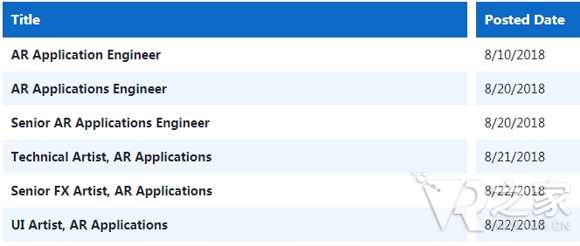 在8月11日,“AR Application Engineer(AR應(yīng)用程序工程師)”的職位空缺出現(xiàn)在蘋果的人才招募頁面上。數(shù)周后,映維網(wǎng)又發(fā)現(xiàn)了五份包含“AR Application(AR應(yīng)用程序)”字眼的招聘啟事。這表明蘋果正在為未來的AR產(chǎn)品招兵買馬。截至今天,映維網(wǎng)發(fā)現(xiàn)了六個(gè)包含“AR Application(AR應(yīng)用程序)”字眼的職位:
