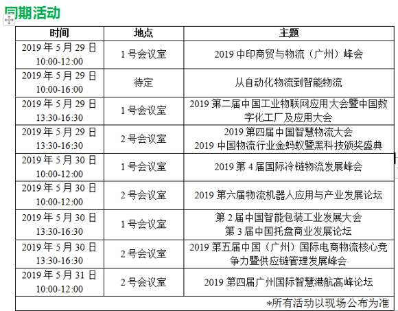 同期展會:2019第10屆中國(廣州)國際物流裝備與技術(shù)展覽會