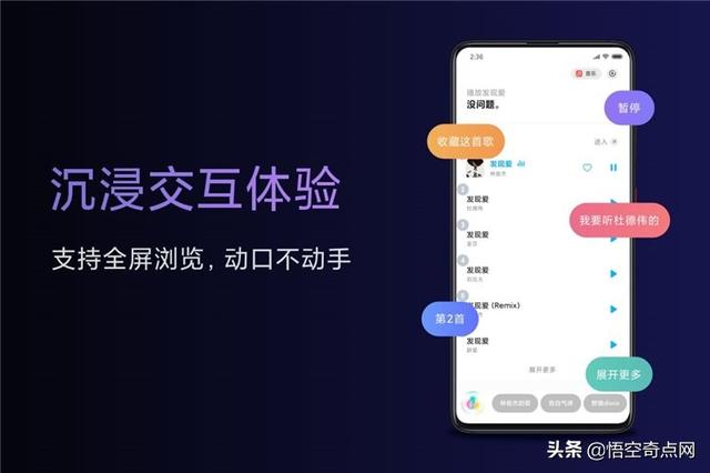 支持全屏瀏覽,無論內(nèi)容多長,都可以輕松閱讀。當(dāng)你使用小愛3.0時(shí),頁面上你能看到的可以點(diǎn)擊的地方,都可以用語音指令來操作。例如,聽音樂,您可以輕松地選擇歌曲、裁剪歌曲、收集、播放和直接切換版本,例如“我想聽實(shí)時(shí)版本”,而不必單擊移動屏幕、移動嘴、使用語音指令輕松選擇歌曲、剪切歌曲、收集、播放和直接切換版本。比如說“我要聽live版”。(目前支持聽音樂、找視頻、查菜譜、聽有聲節(jié)目等場景,未來將拓展到更多場景中)