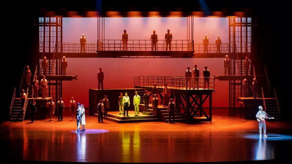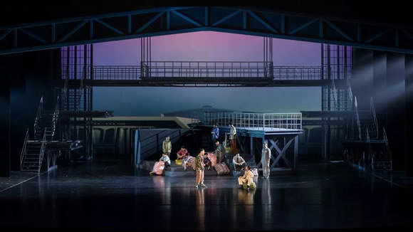 舞美設(shè)計上,團(tuán)隊大膽創(chuàng)新地運(yùn)用最新的智能化舞臺系統(tǒng),將大橋、人工島、深海沉管等場景完美呈現(xiàn)在觀眾眼前。