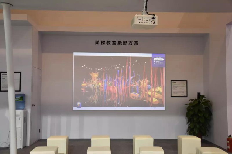 在本次高博會Vivitek(麗訊)的展示區(qū),超短焦投影機解決方案無疑是大家關注的重點。由于超短焦投影可以采取幾乎緊貼投影幕的安裝方式,不會產生陰影干擾教學,又避免老師上課時受到炫目的投射光照射而影響講解,因此成為傳統(tǒng)投影設備的升級換代必選。