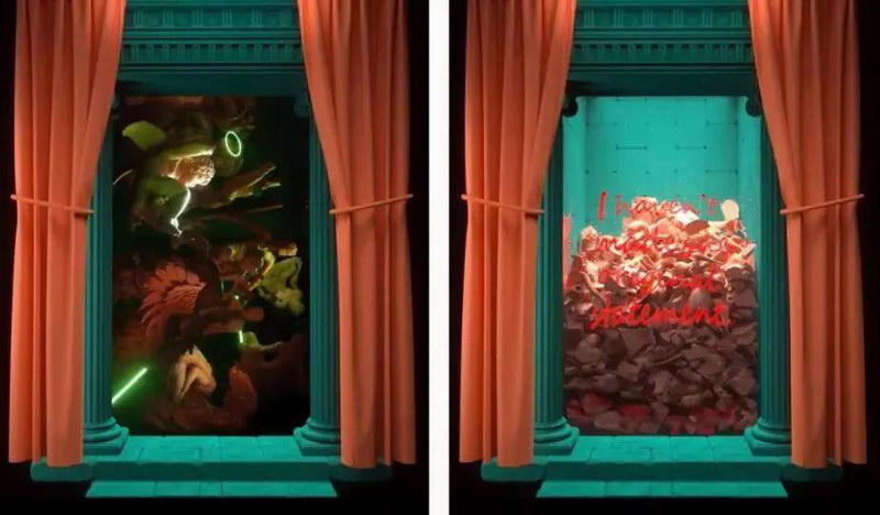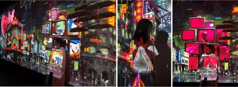 使用投影儀和紅外捕捉設備,打造的沉浸式交互影像空間。為了揭示在光怪陸離的現實里,不同的人設與欲望是如何在每個人身上所展現、隱藏、撕裂的。