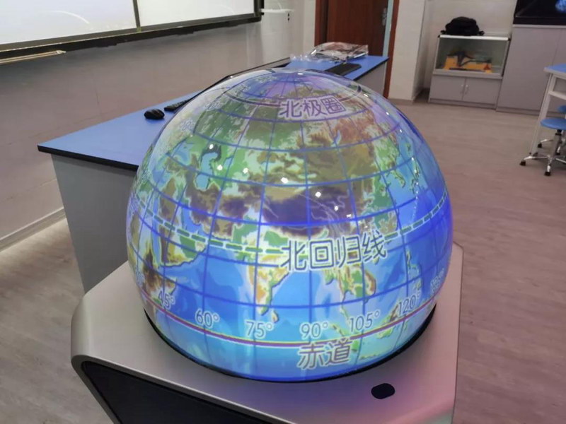 ▲多媒體超半球互動球幕投影演示儀:全方位展示球體教學(xué)內(nèi)容,趣味演示各天體和星體、全球氣壓帶、風(fēng)帶、洋流等地理活動。