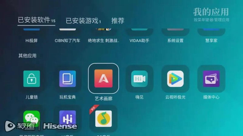 海信激光電視,不僅僅是你的最佳觀影之選,還是你的家裝裝飾之選。對著電視說出「藝術(shù)畫廊」,語音識別即可進(jìn)入程序,點擊「藝術(shù)畫廊」打開程序,設(shè)置你想要的藝術(shù)畫,把客廳打造成成“藝術(shù)畫廊”,還自由切換藝術(shù)畫的選擇。你想要的田園風(fēng)、歐美風(fēng)、極簡風(fēng),都能擁有。