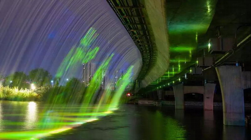 打造出87米×6.5米的水簾投影勝景