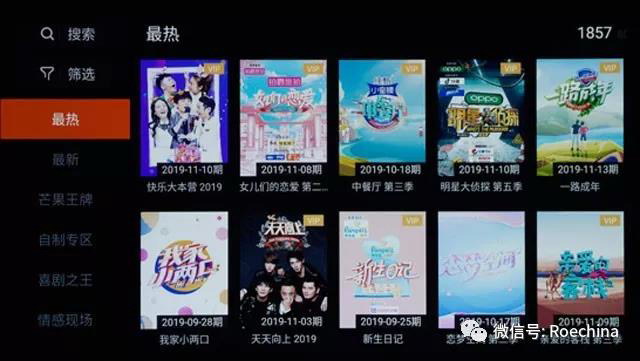 圖1:對于一款激光電視而言,機(jī)內(nèi)的節(jié)目源系統(tǒng)是否完善是用戶十分關(guān)心的一點(diǎn)。i965L在這方面就接入了芒果TV系統(tǒng),整體操作界面簡單直接,只需通過主菜單上方一連串的圖片進(jìn)入相應(yīng)的節(jié)目源中即可,包括各類影視娛樂節(jié)目