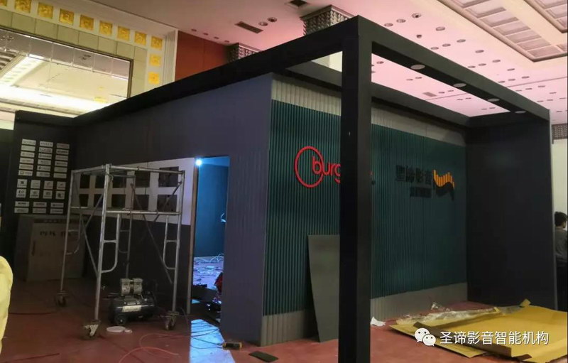圣諦連續(xù)幾年參展,了解到由于展館內(nèi)空間位置及搭建條件限制,大多數(shù)的影音參展商在一個狹窄的房間內(nèi)進行音箱類產(chǎn)品的展示,簡單擺設(shè)幾件產(chǎn)品,或者搭建安置音箱的背板或桁架,或者組個2.1聲道系統(tǒng)放音樂,對于聲學(xué)的處理是很有限的,并且展館內(nèi)人流涌動十分嘈雜,很多家參展商都同時外放音樂,聲音非常的混亂,因此更不要說觀眾體驗的效果了。