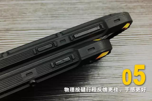 手機的右側(cè)微電源開關(guān)按鍵,左側(cè)上方的是音量+-按鍵、下方的目前為行業(yè)定制客戶預(yù)留的空白按鍵。這次升級后的WF355在物理按鍵手感上也做了一定的優(yōu)化,按鍵行程手感反饋以及軟硬程度更佳。