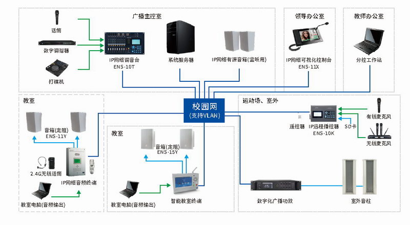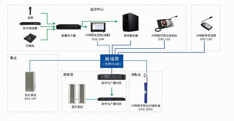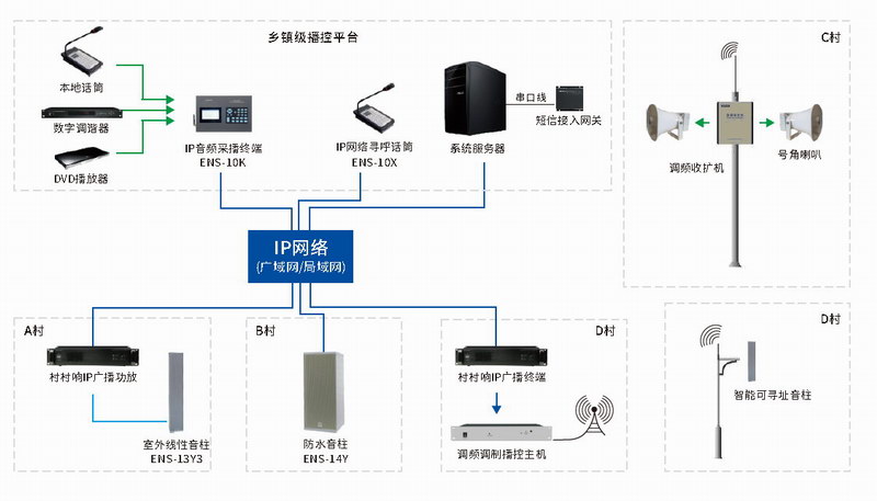 得勝ENS系列IP網絡廣播系統(tǒng)可根據使用場景合理搭配相關設備,有效解決校園、高速公路、酒店/大廈、公園、大型商業(yè)綜合體和村村響等廣播方案。