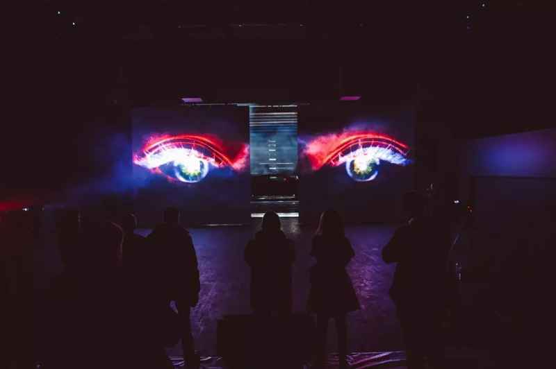 最特別的特征是紅色雪紡帶漂浮在舞臺(tái)上,與汽車一樣,它消除了真實(shí)世界和虛擬世界之間的界限。