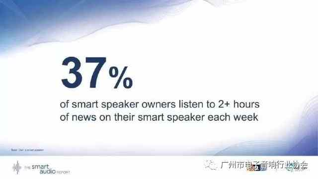 聽新聞成為第一批智能音箱采用者和早期主流用戶使用的重要驅動力:37%的用戶每周使用智能音箱收聽至少2小時的新聞。