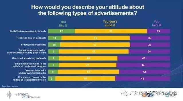 該報告還調查了智能音箱用戶對廣告的態(tài)度: