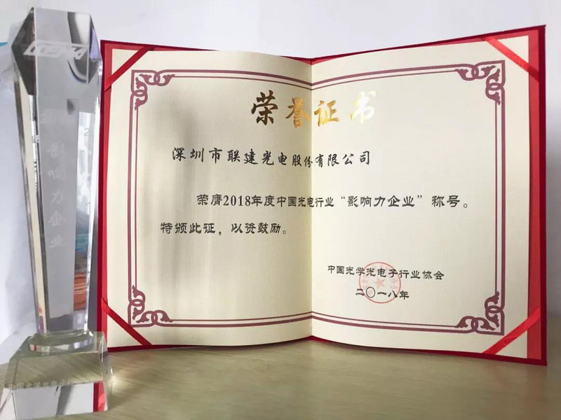 喜訊!聯(lián)建光電榮膺中國(guó)光學(xué)光電子行業(yè)“影響力企業(yè)”殊榮