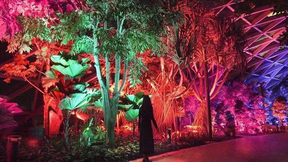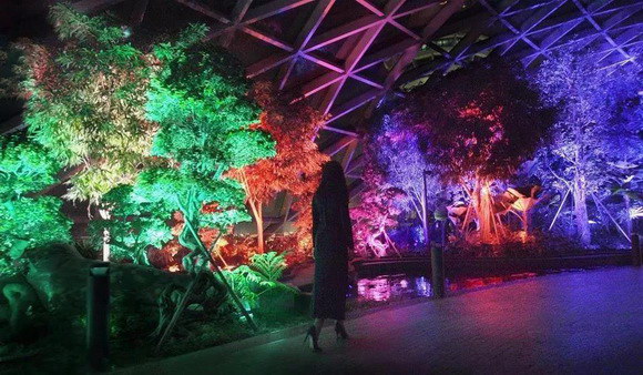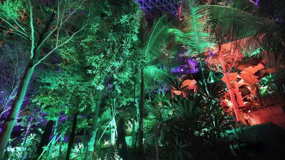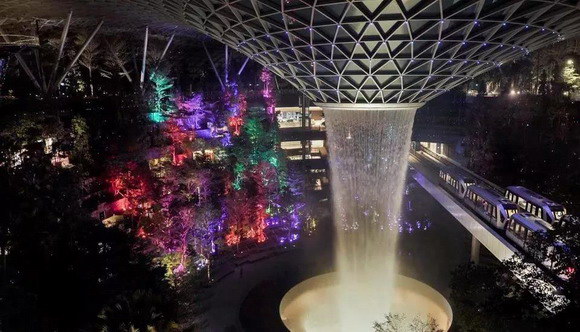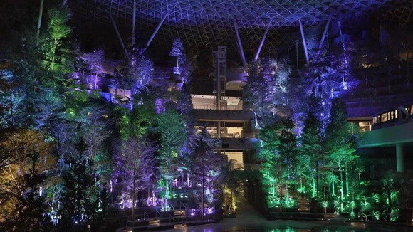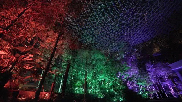 隨著傍晚的到來,白天一絲不茍接待游客的樟宜機(jī)場變得朦朧夢幻起來。像是天空中的七色彩虹落入人間,將森林溫柔的覆蓋。游客被紛紛吸引,讓人們沉浸在奇妙迷人的體驗(yàn)中。