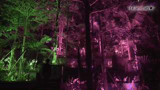 第一項(xiàng)作品名為“回響森林”,是teamLab與資生堂旅游零售合作打造的作品,通過S E N S E多感官藝術(shù)裝置讓夜間的熱帶雨林森林谷被光影藝術(shù)點(diǎn)亮,展現(xiàn)獨(dú)特的夜晚風(fēng)光供游客觀賞。