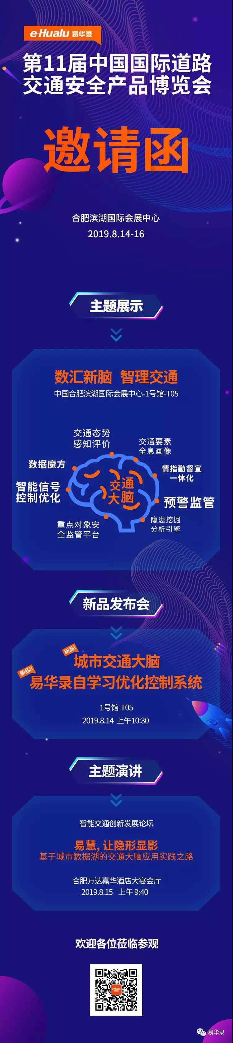 作為智能交通領(lǐng)域的領(lǐng)軍企業(yè),易華錄將于8月14日隆重發(fā)布“智慧交通大腦”和“易華錄自學(xué)習(xí)優(yōu)化控制系統(tǒng)”,并將受邀參加8月15日上午的“智能交通創(chuàng)新發(fā)展論壇”,以“易慧,讓隱形顯影-基于城市數(shù)據(jù)湖的交通大腦應(yīng)用實(shí)踐之路”為主題,和與會(huì)嘉賓一起探討行業(yè)發(fā)展趨勢(shì),敬請(qǐng)各界嘉賓蒞臨參加。