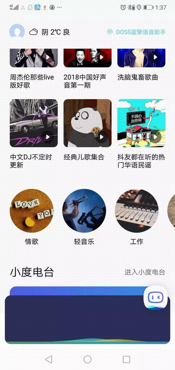 打開小度藍(lán)牙APP,右上角便顯示了DOSS魔輪的標(biāo)識(shí)。通過手機(jī)藍(lán)牙連接之后的DOSS魔輪就能夠直接查詢數(shù)據(jù)、播放歌單,云端搜索多種信息等。