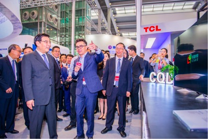 TCL集團(tuán)高級(jí)副總裁、TCL多媒體CEO王成陪同工信部領(lǐng)導(dǎo)參觀TCL展臺(tái)