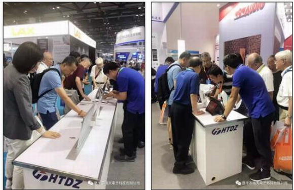 HTDZ一直致力于科技創(chuàng)新和新產(chǎn)品研發(fā),產(chǎn)品質(zhì)量、團(tuán)隊服務(wù)得到了新老顧客的一致稱贊,展會期間海天電子展位上人潮涌動,不少觀眾都到此詢問產(chǎn)品信息。