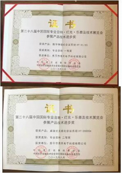 獎項二為產(chǎn)品技術(shù)進(jìn)步獎,參加此項評選的要求較高,參賽產(chǎn)品必須具有自主知識產(chǎn)權(quán)和自我品牌,且是近兩年生產(chǎn)投放市場并獲得國內(nèi)外相關(guān)專利證明或權(quán)威獎項的產(chǎn)品。海天電子一直致力于科技創(chuàng)新和新產(chǎn)品研發(fā),即使面對這樣苛刻的條件依然信心滿滿,憑借數(shù)字伸縮式會議系統(tǒng)HT-X1/03、桌面式無紙化會議系統(tǒng)HT-20000A分別榮獲產(chǎn)品技術(shù)進(jìn)步獎的一等獎和二等獎!