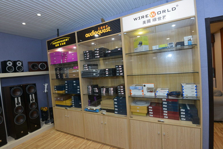 好馬配好鞍,發(fā)燒音箱沒有好的線材怎么行?后面的架子上,美國天仙配、美國線圣、美國線世界等世界著名線材品牌,從喇叭線、信號線到電源線,都十分齊全。店員也十分熱情,幫助來這里發(fā)燒友介紹器材的搭配,忙的不可開交。