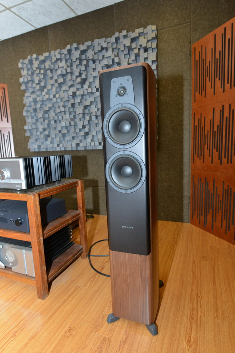 樂頌坊最后一個試聽室同樣也是丹拿新輪廓Contour 60音箱為主要演示音箱。全新Contour采用丹拿最知名的Esotar2 織物軟球頂高音單元,該單元多年來憑借清晰甜美的音質(zhì)聞名于世,以前一直只使用在更高等級的音箱上。而運用到新Contour音箱中,是丹拿的首次嘗試。另外全新Contour還采用由超輕鋁質(zhì)音圈和有限元仿真優(yōu)化的雙磁鐵磁路系統(tǒng)驅(qū)動的最新低音單元。甚至Contour的箱體都與過去發(fā)生了巨大的變化。可以說新一代Contour素質(zhì)要比過去高了不少!