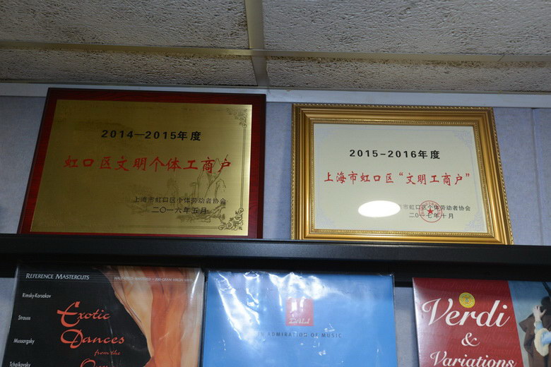 因為銷售和服務做的好,上海樂頌坊也受到不少政府、廠家、行業(yè)的嘉獎。我一眼就瞄到了廠家邀請樂頌坊去工廠參觀和嘉獎的照片,以及上海市虹口區(qū)個體勞動者協(xié)會頒發(fā)的獎牌。