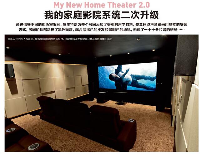 家庭影院除了可以是一家團(tuán)聚的地方,也可以是品味細(xì)致的空間氛圍,將工作情緒歸零,緩解生活壓力的小天地。所以對(duì)舊式房屋進(jìn)行升級(jí)改造,開辟一個(gè)完整的影音娛樂空間,是許多家庭都?jí)裘乱郧蟮氖虑。這個(gè)案例中,屋主就特別對(duì)自家的舊式家庭影院系統(tǒng)進(jìn)行了升級(jí)改造,原有的小型投影機(jī)和投影幕升級(jí)成了大系統(tǒng),器材架也重新進(jìn)行了規(guī)劃,視聽室的大門、內(nèi)飾、燈光照明都進(jìn)行了大范圍的更新。通過借鑒不同的視聽室案例,屋主特別為整個(gè)房間添加了美觀的聲學(xué)材料,整套環(huán)繞聲音箱采用懸掛的安裝方式,房間的頂部涂抹了黑色面漆,配合深褐色昀沙發(fā)和咖啡色的地毯,形成了個(gè)十分和諧的格局。筆者最為欣賞的是視聽室的大門設(shè)計(jì),在一個(gè)十分平常的大門上安裝了可以吸收噪聲的聲學(xué)模塊,并且以覆蓋邊緣的方式進(jìn)行貼合,讓房間的自外部下受噪聲的影響。其次是大門兩側(cè)的電影海報(bào),這兩幅海報(bào)的邊框位置還進(jìn)行了特殊處理,加裝了白色的LED燈,在晚上的時(shí)候可以開啟畫框的燈光線,映照出清晰和絢麗的電影海報(bào),屋主還可以定期更新海報(bào),讓視聽室更添專業(yè)電影院的味道。視聽室內(nèi)部的器材架,也經(jīng)過了精心的設(shè)計(jì),對(duì)于不同種類的播放機(jī)、功放、處理器等等器材的擺放都經(jīng)過了用心的考量,并且在底部加建了一個(gè)減振板,以保證器材的穩(wěn)定、安全運(yùn)作。
